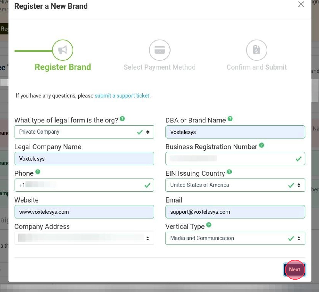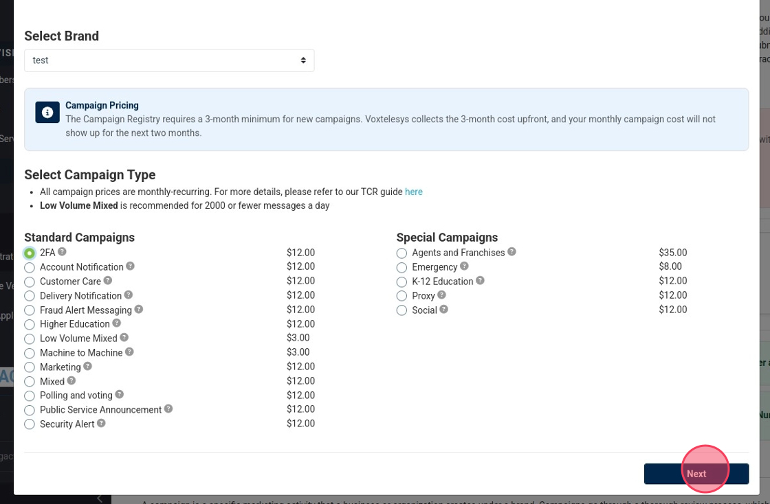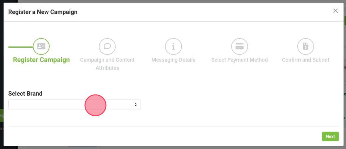 Select the newly Verified (or other as desired) Brand to associate with the Campaign