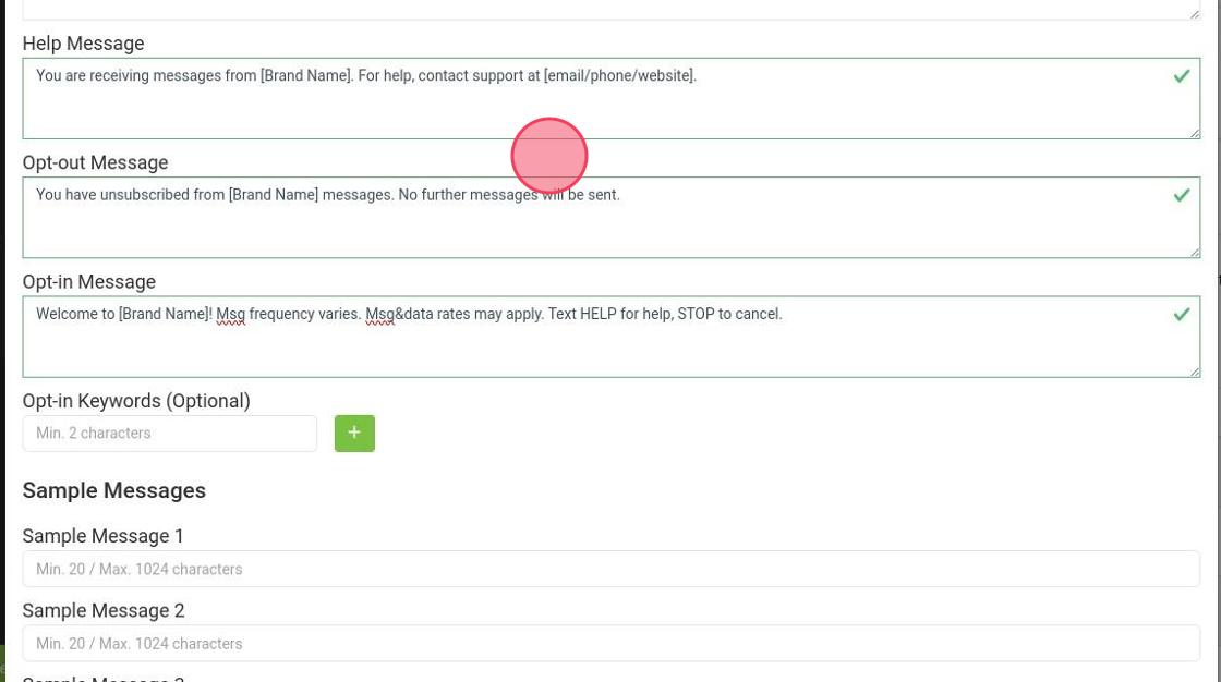 Opt-In/Out and Help Messages: Provide details on what a message might look like to a customer who has sent you a message with Keyword. Please review the samples below as these are good examples of how your messages should be structured.