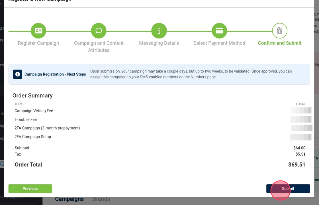 After you complete the Brand 2FA process, return to this tutorial to create your Campaign.
