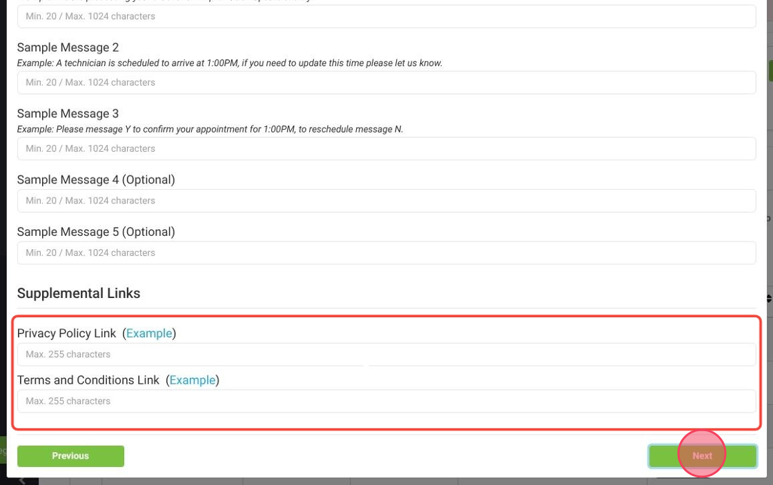 Sample Messages: These should replicate true messages that you would send out to recipients. Please include a sample message for EACH use case that you selected.